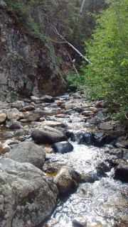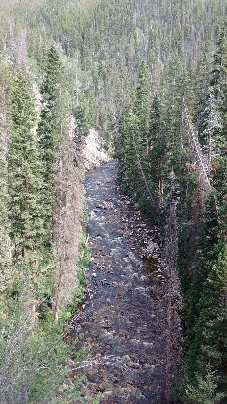One of our group members decided to turn back a few miles in and get the car to meet us at the end of the trail. As we marched on it became evident that we were going to be racing daylight to make it off the trail before sunset. We started to push the pace, knowing that the second to last mile would be straight uphill. The path wove up and down beside the river, dipping next to the riverbed before quickly reaching up towards the mountains again. We’ve been keeping track of the flights of stairs we climb while hiking with my fitbit, and didn’t think anything would touch the Med Bow Peak hike. We were wrong.