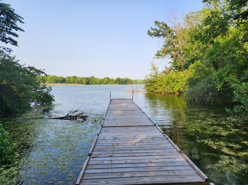There was one more empty campsite past ours, then we circled back to find the outhouse and some place we could filter water that wasn’t as murky and weedy as the lake was in front of our campsite. We had passed a dock when we came in, so we walked there and I laid out on my stomach to scoop water into the filter bag from the edge of the dock. Babes, that was a little workout! Water is heavy!